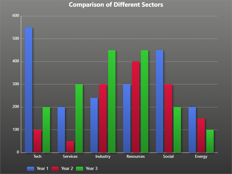 Explore the comparison of various sectors. Notice the distinct growth and trends in each category.